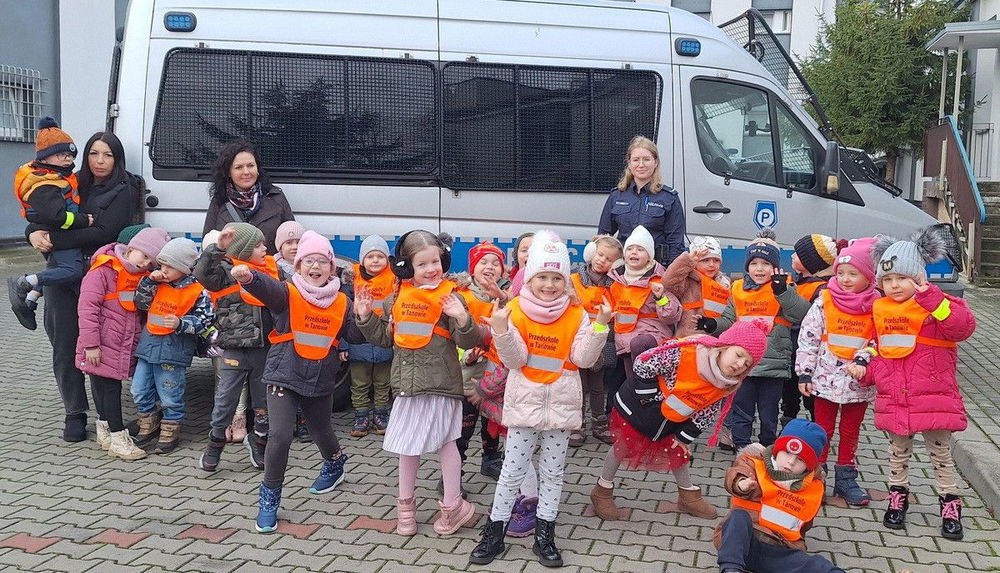 Dzieci z Przedszkola Publicznego w Tanowie odwiedziły Komendę Powiatową Policji w Policach. Poznały stanowisko kierowania, sprzęt policyjny i radiowozy oraz dowiedziały się, jak dbać o bezpieczeństwo.